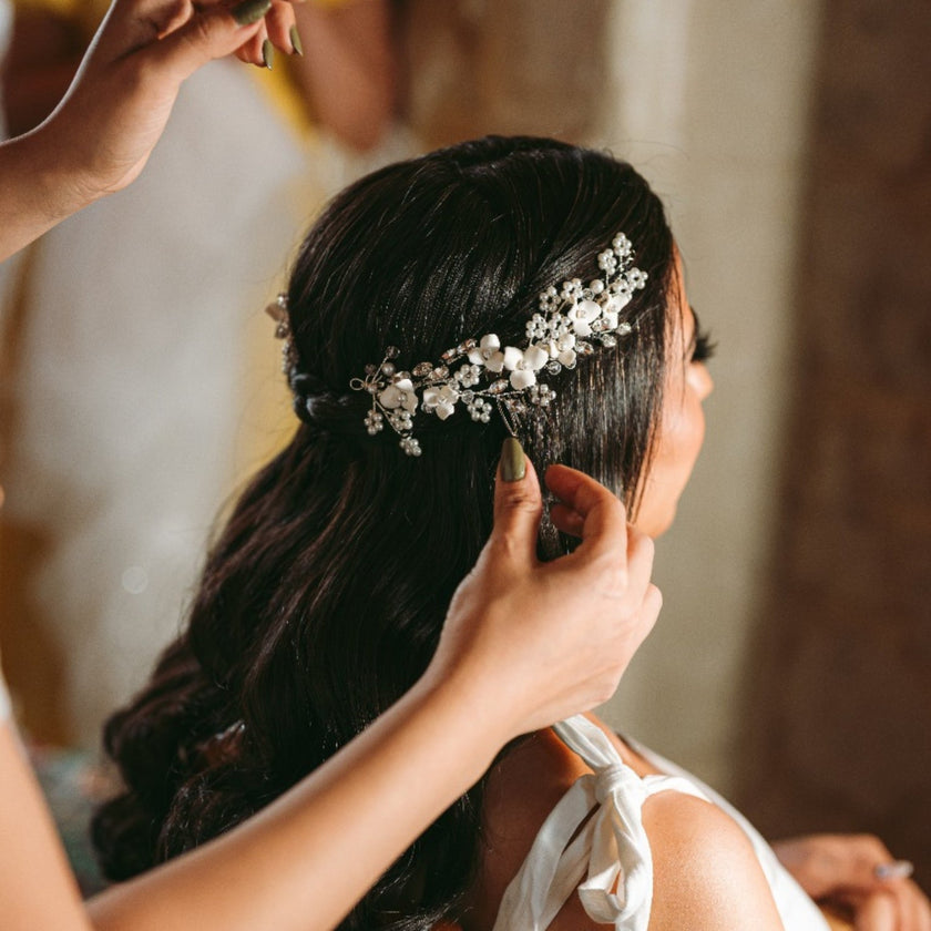 Slide to see how our handcrafted jewelry transforms every look into a bridal masterpiece.